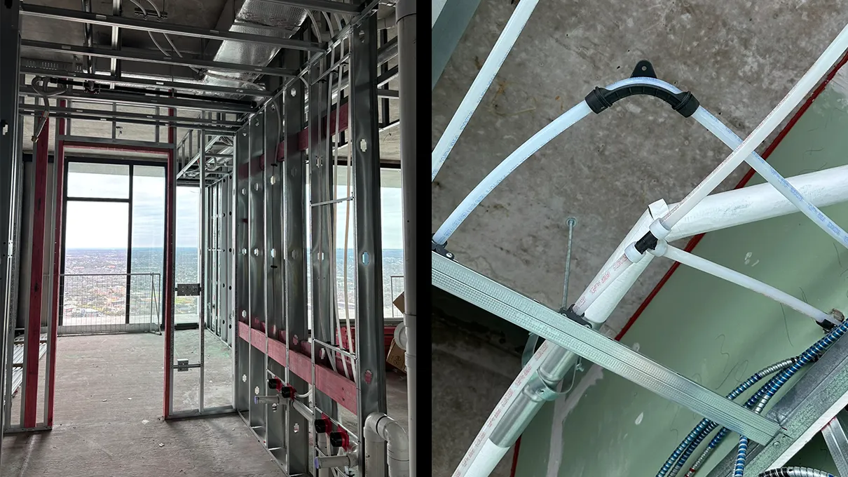 The Uponor AquaPEX and ChlorFIT Schedule 80 Corzan CPVC domestic water system at Waterline showcases the diverse abilities of polymer piping systems. The contractors for Waterline chose to install an Uponor polymer piping system because they understood it would be a superior option, durable for the supertall structure and reliable for decades.